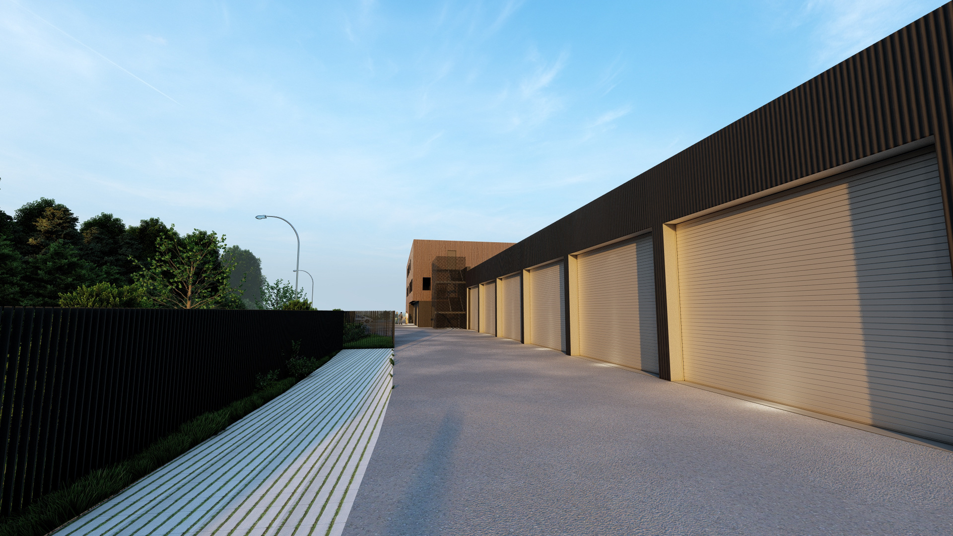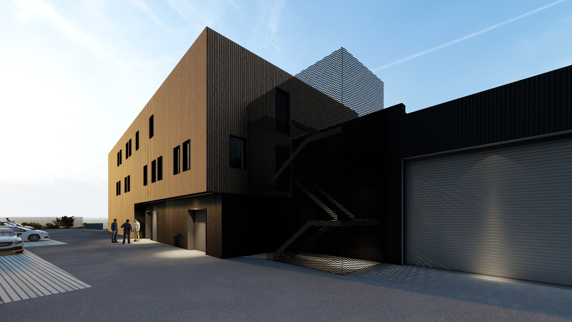 Matériaux utilisés : Bardage métallique, Bardage bois, Ferronneries extérieures