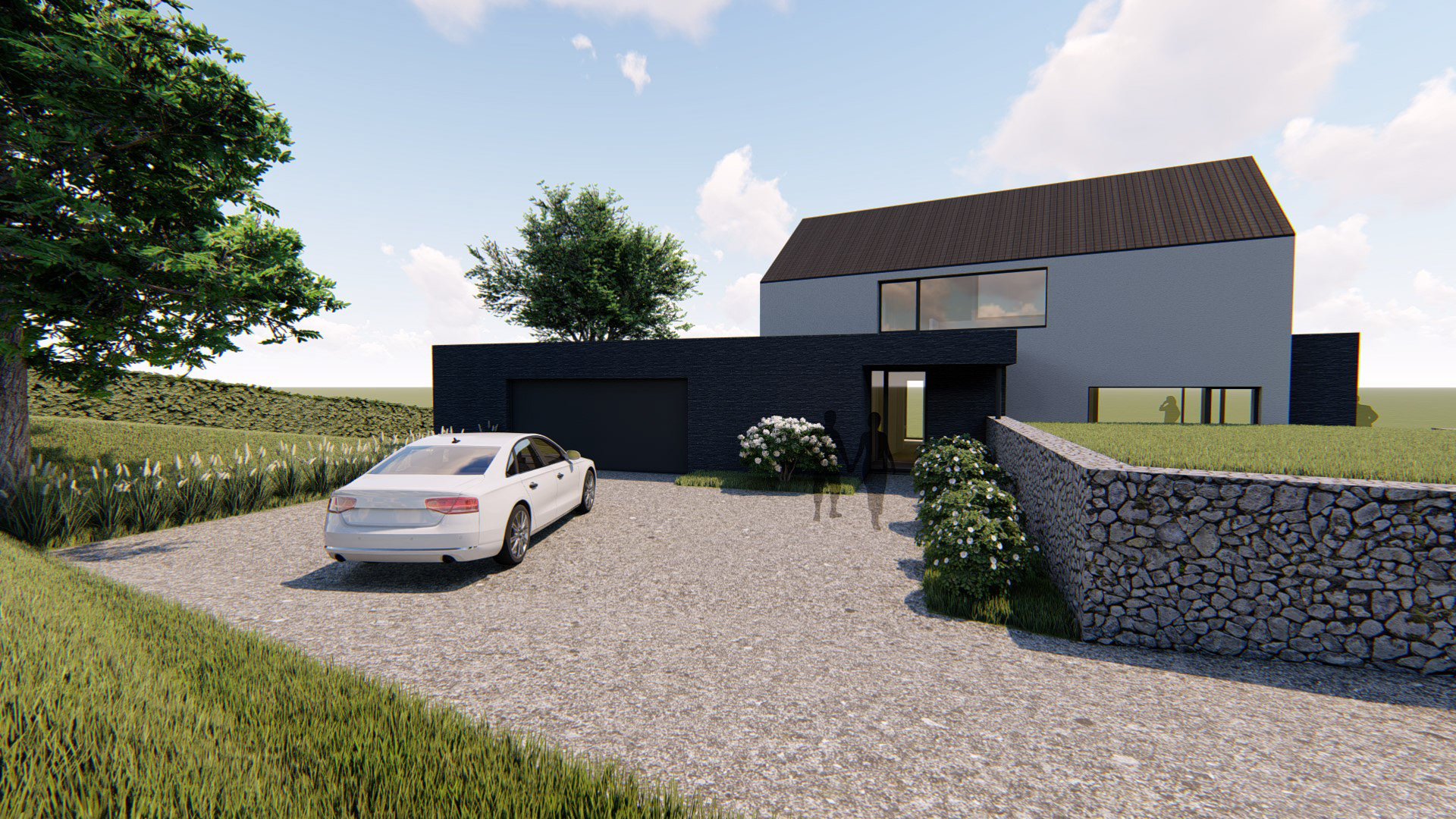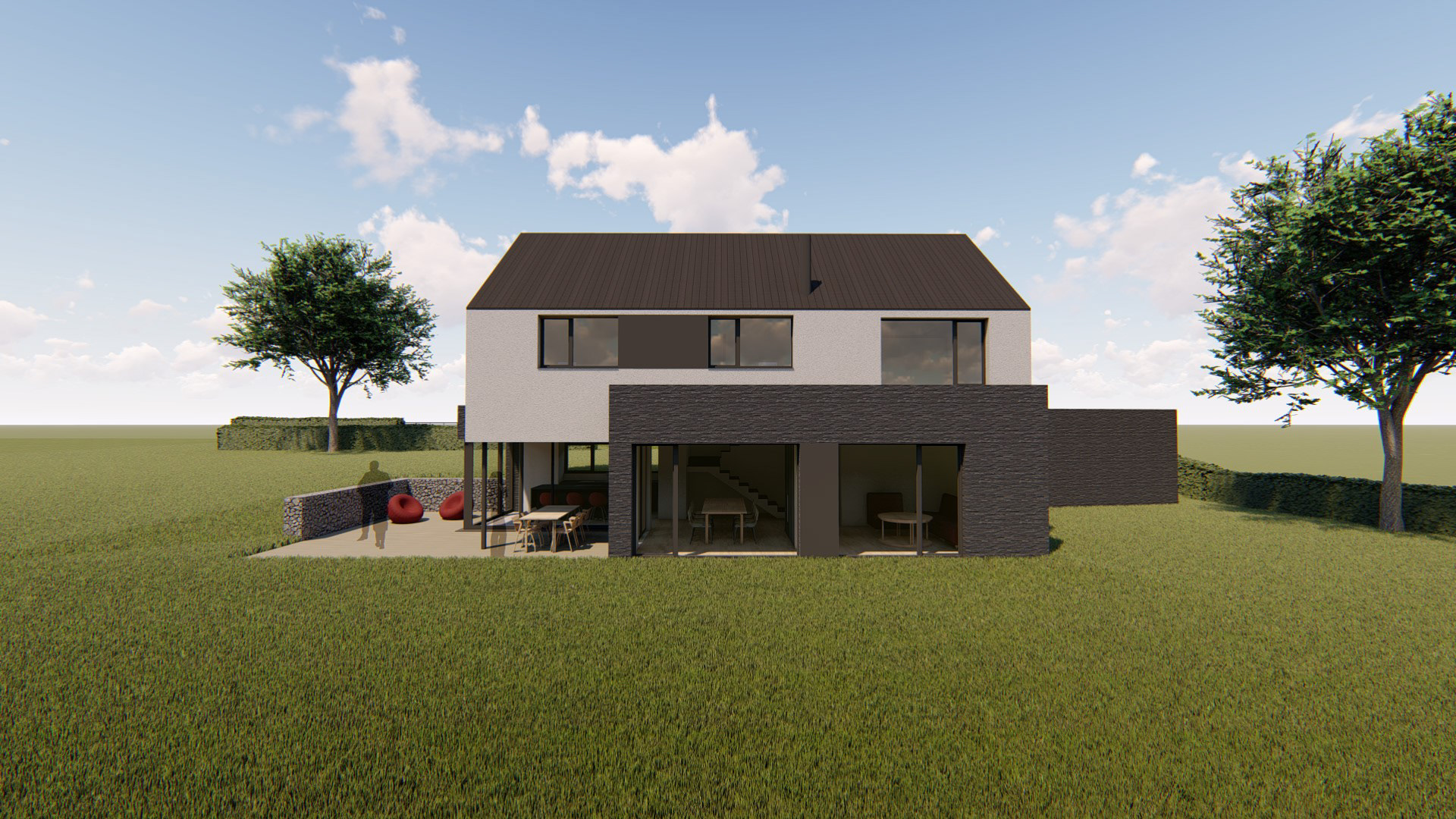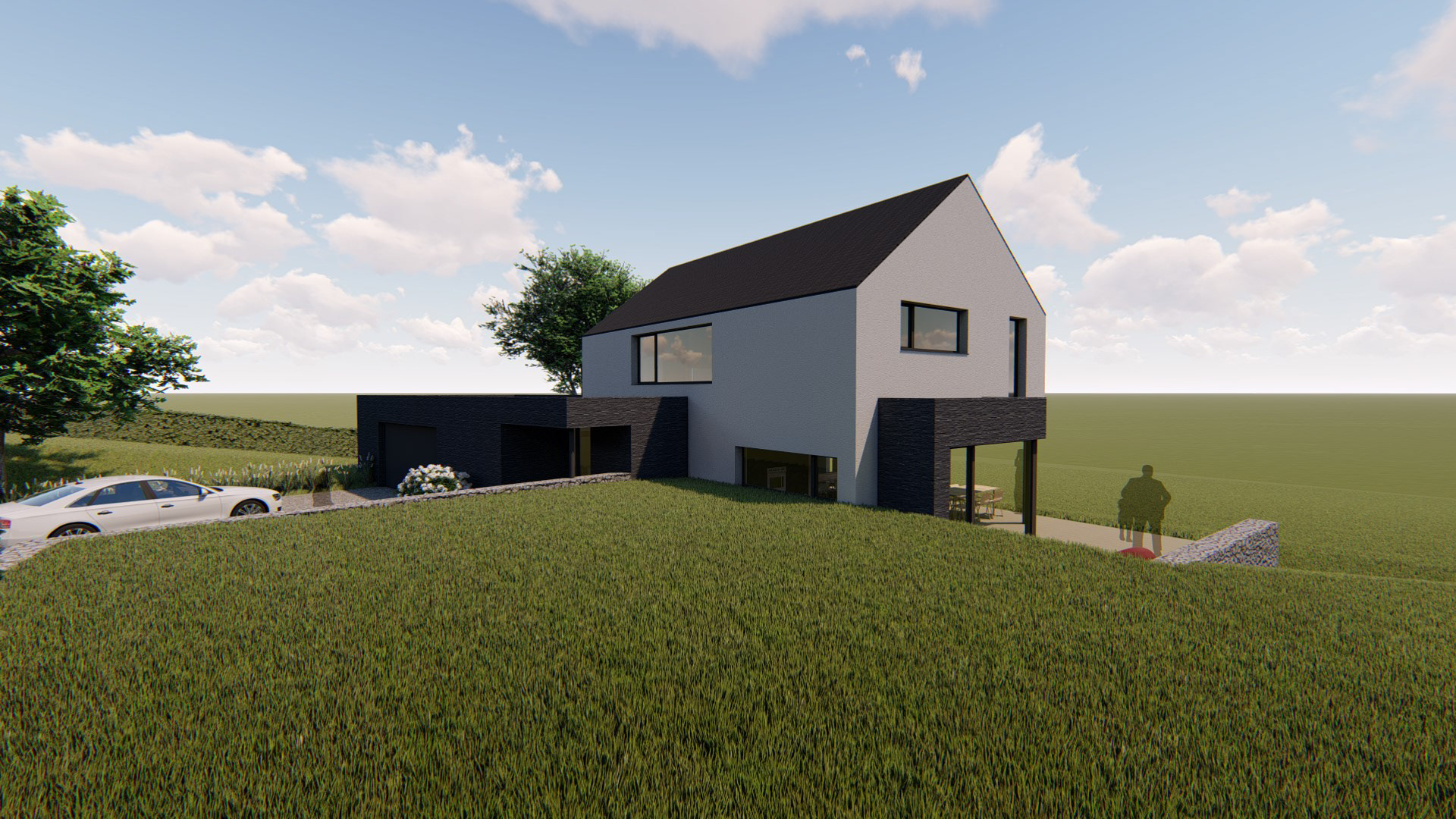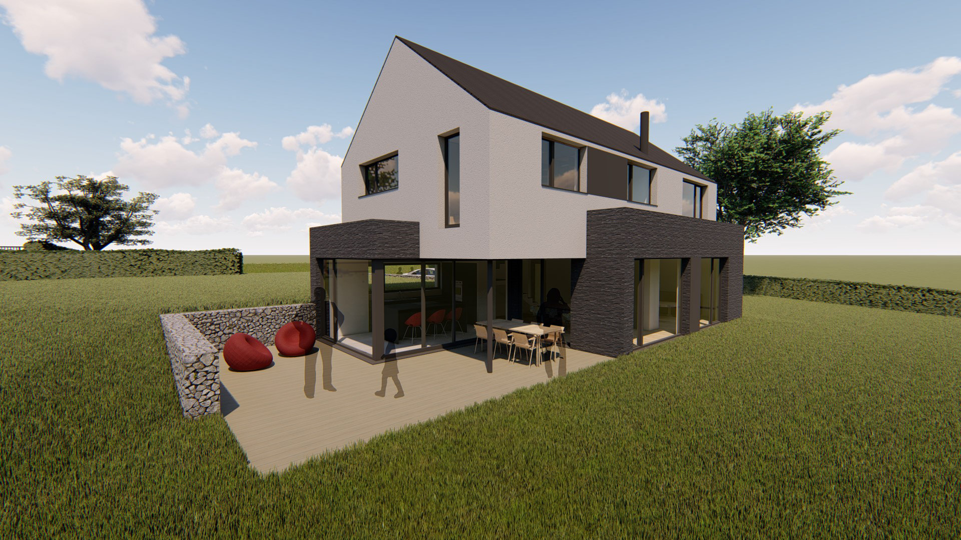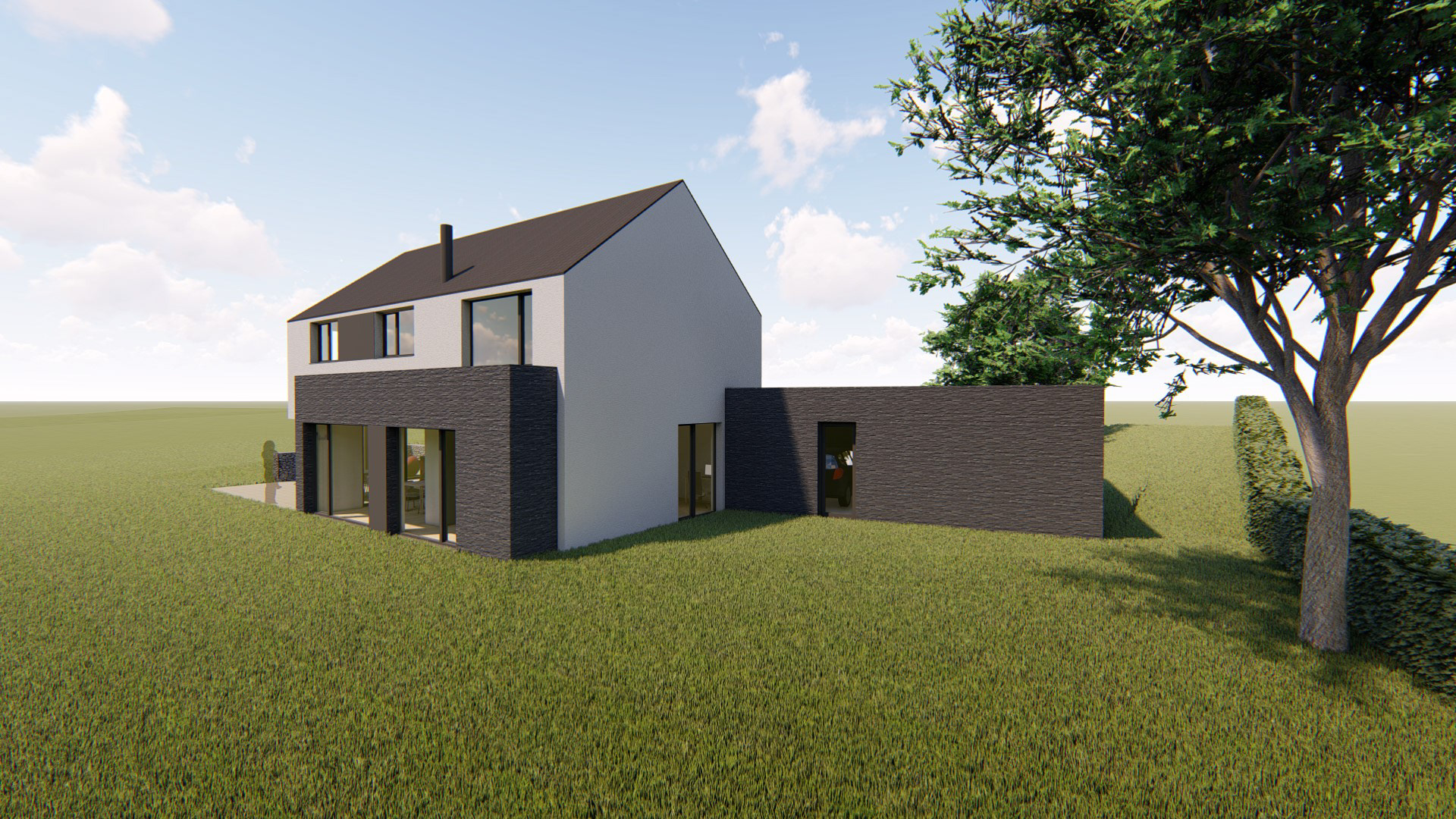 Matériaux utilisés : Brique noire, crépi, ardoises