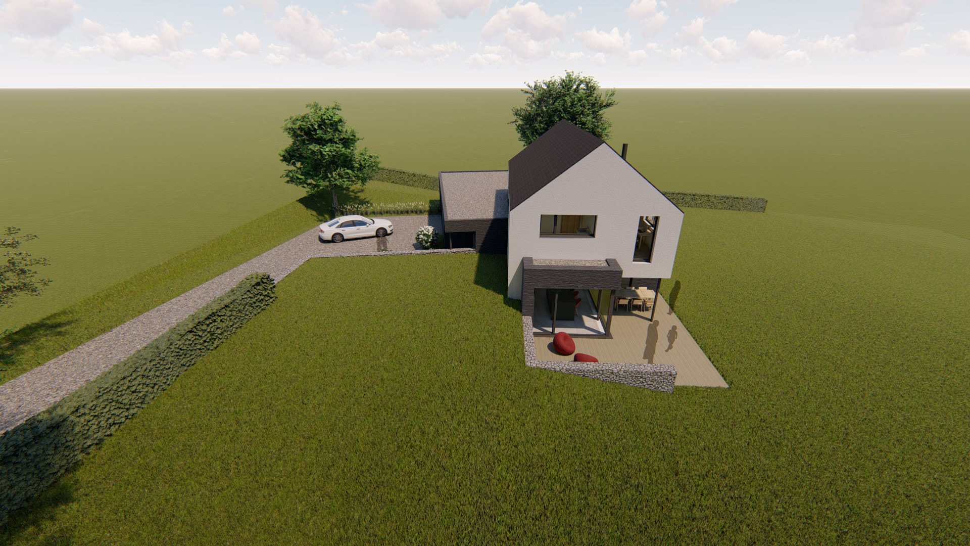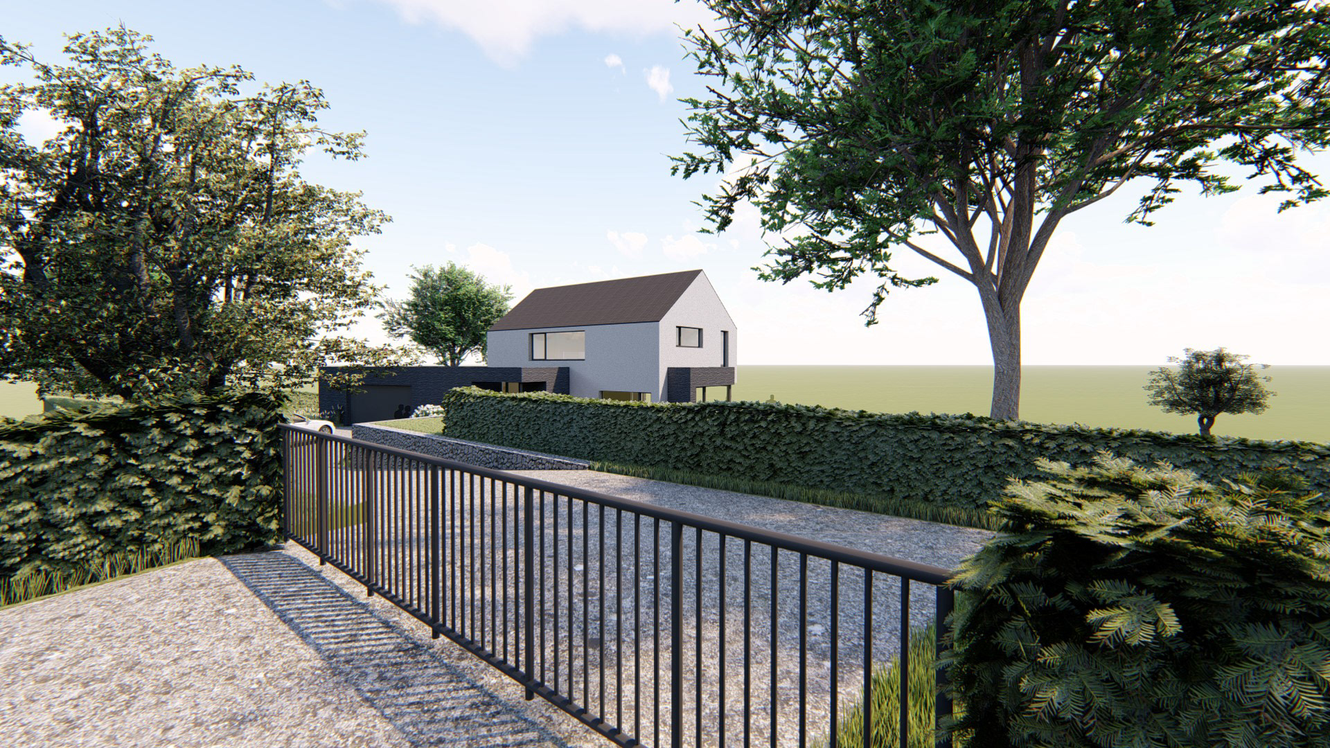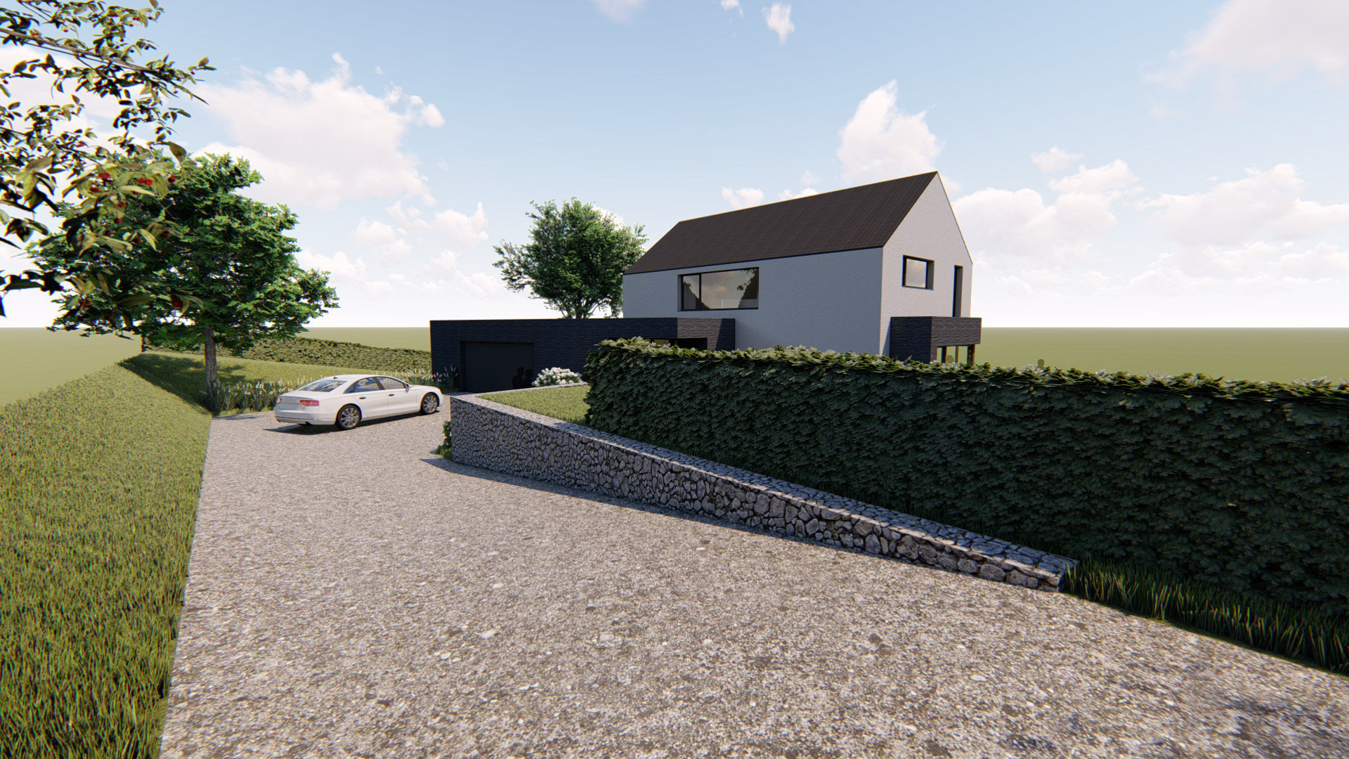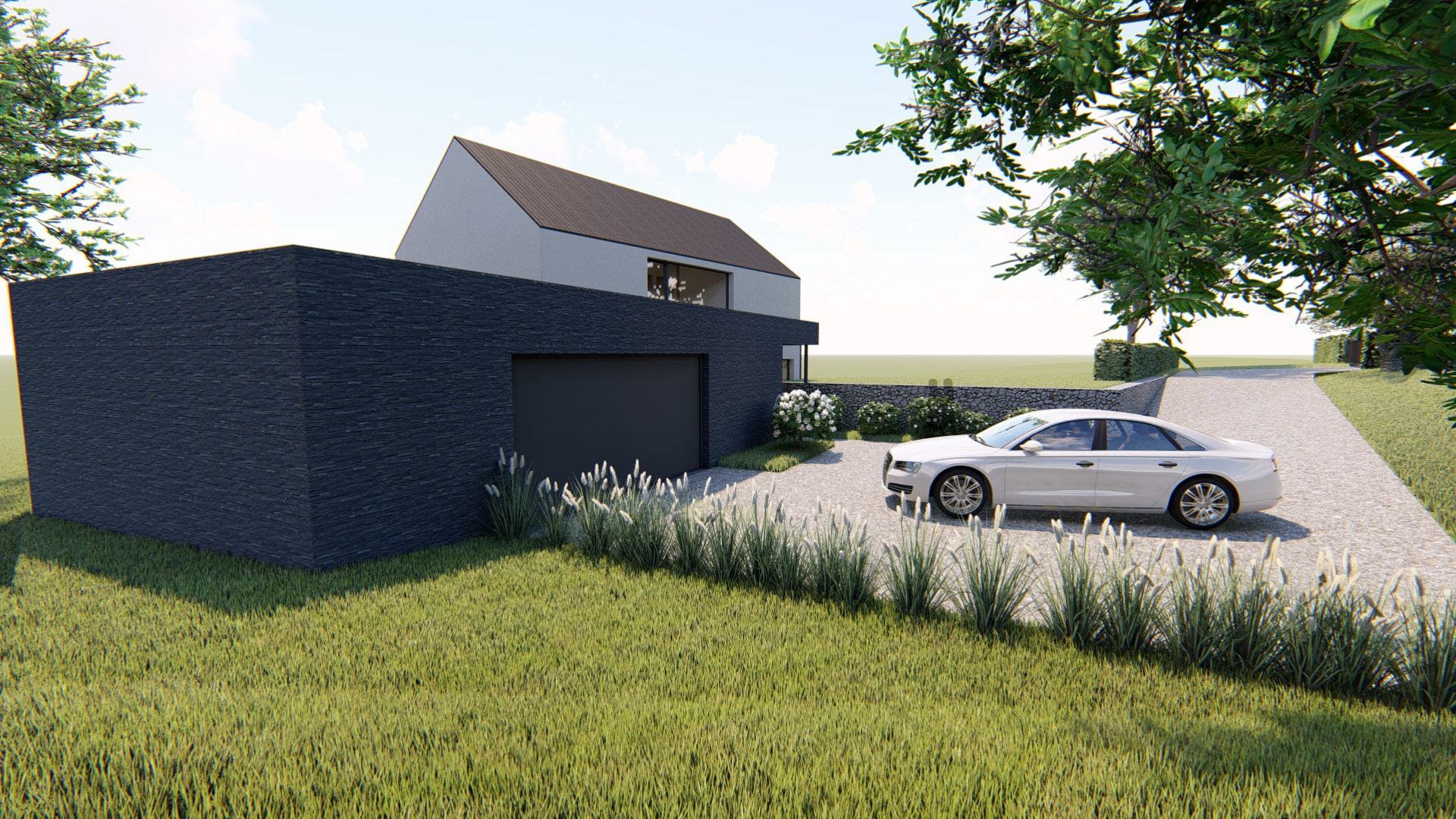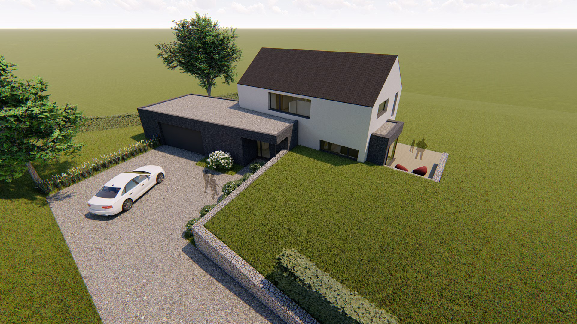 Matériaux utilisés : Brique noire, crépi, ardoises